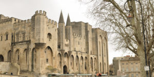 教皇宫, 1334年教宗本笃十二世及克里蒙六世下令兴建. 有七位教宗曾在这里任职. 它也是拿破仑时期法国的一座兵营兼牢, 现在是国家博物馆.