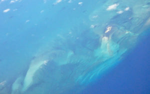 于2011.06.02 - 记得来的飞机上坐错了边没有看到什么景色. 好在回程的位置能够看到海, 拿在相机不时不时地就往外瞄. 开始的时候飞机一直都飞在一个很低的高度, 往下看能看到很多很多的岛屿. 海水呈现着各种的蓝