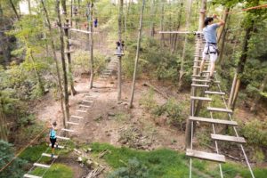 Treetop adventure 就是像词面陈述的一样, 就是在一个树林半空中设置了各种的障碍. 它不是一个比赛, 更多的是自我挑战. 这些障碍看着不难, 可是当你真的一个人悬在半空中要一步步前进还是挺有难度的, 不但要征服恐高, 要有很好的平衡力, 还要有不错的体力毅力. 是一个很不错的户外活动...